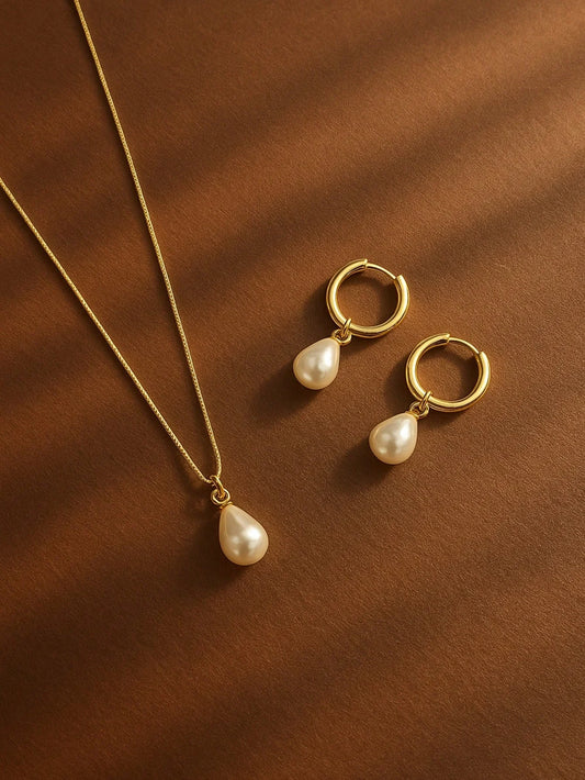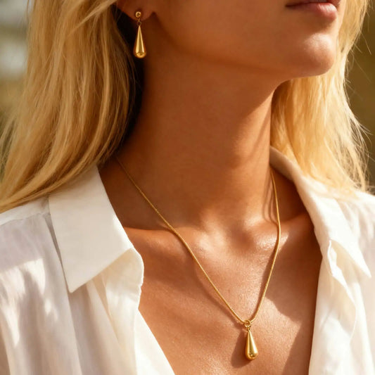 Zestaw Naszyjnik i Kolczyki Kropla Pozłacany 18K