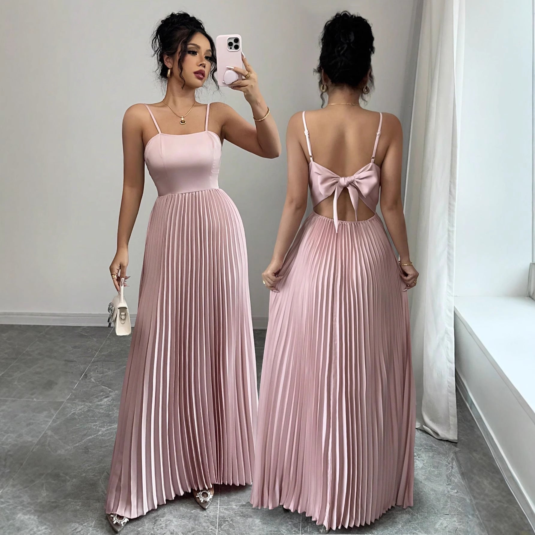 Lekkość, która podkreśla każdy ruch z naturalną elegancją i subtelną wyrazistością. Dopasowana góra akcentuje dekolt oraz talię, a plisowana, zwiewna spódnica nadaje sylwetce smukłości i harmonii.