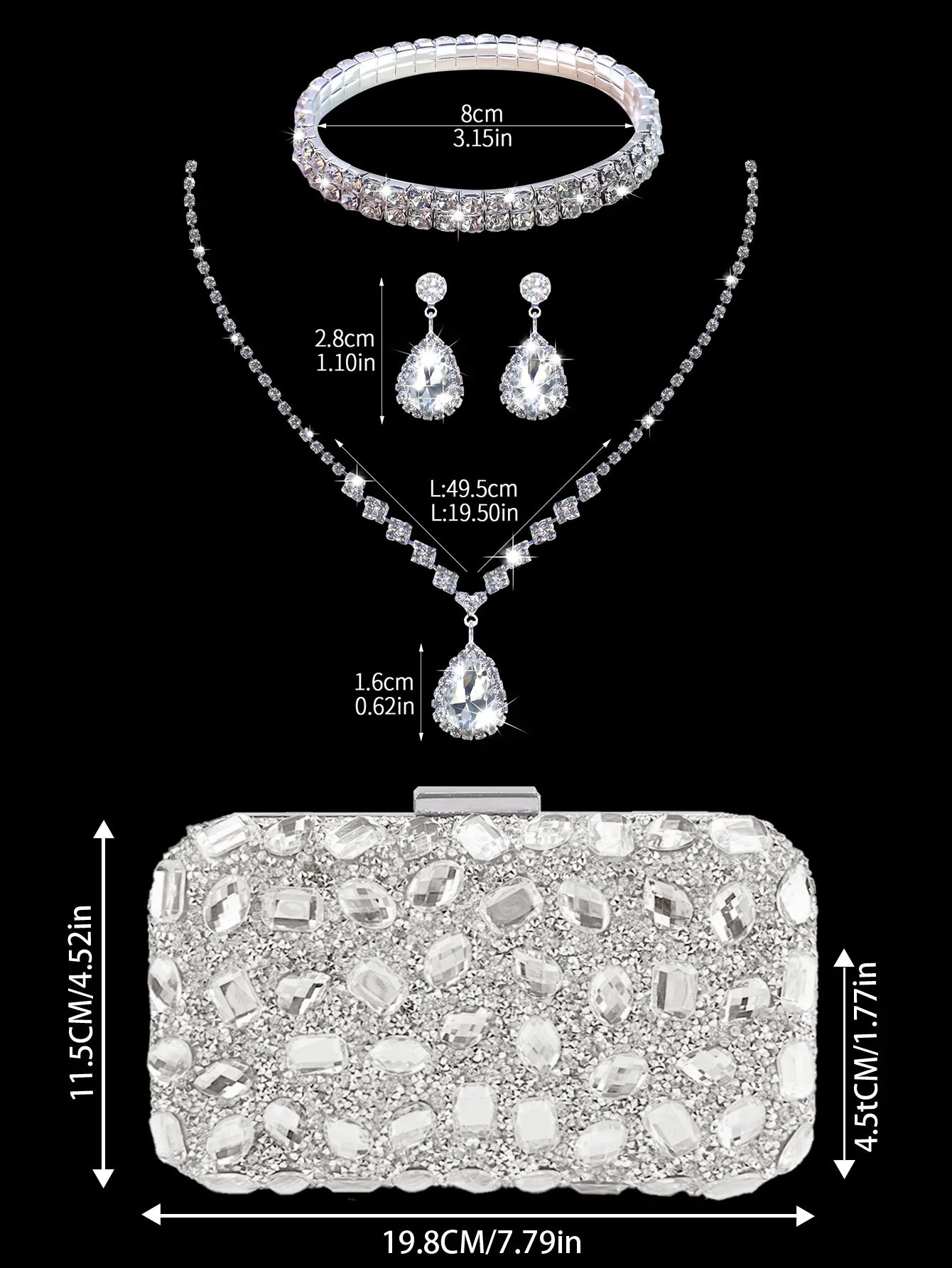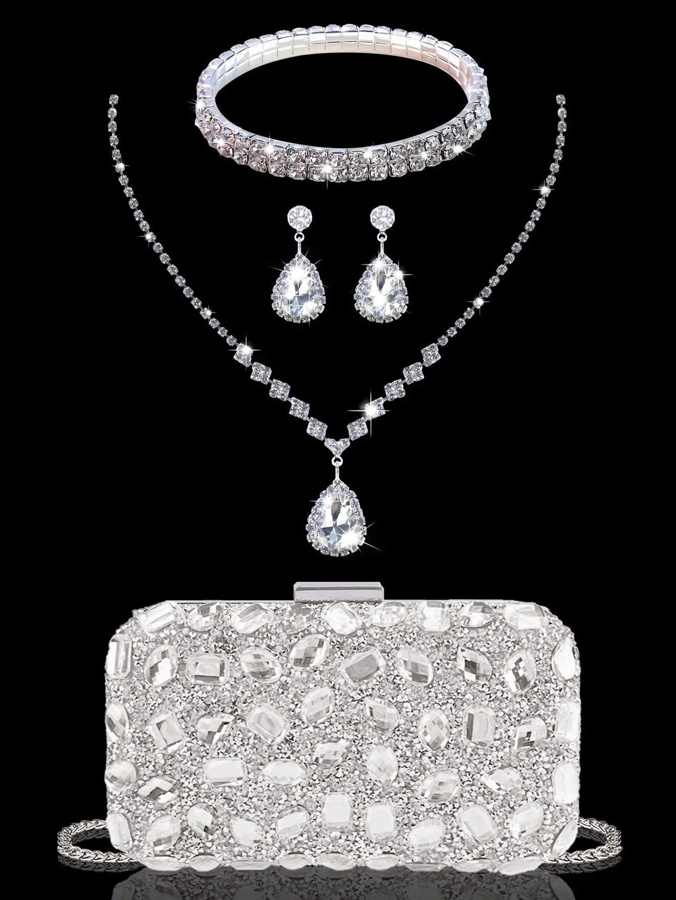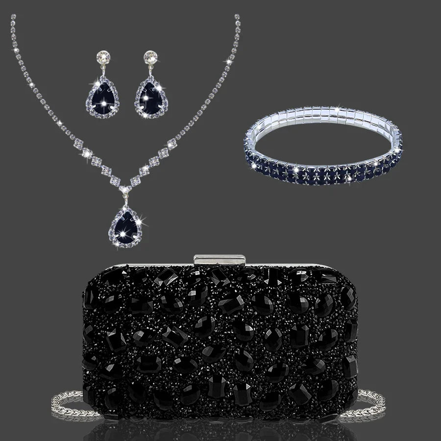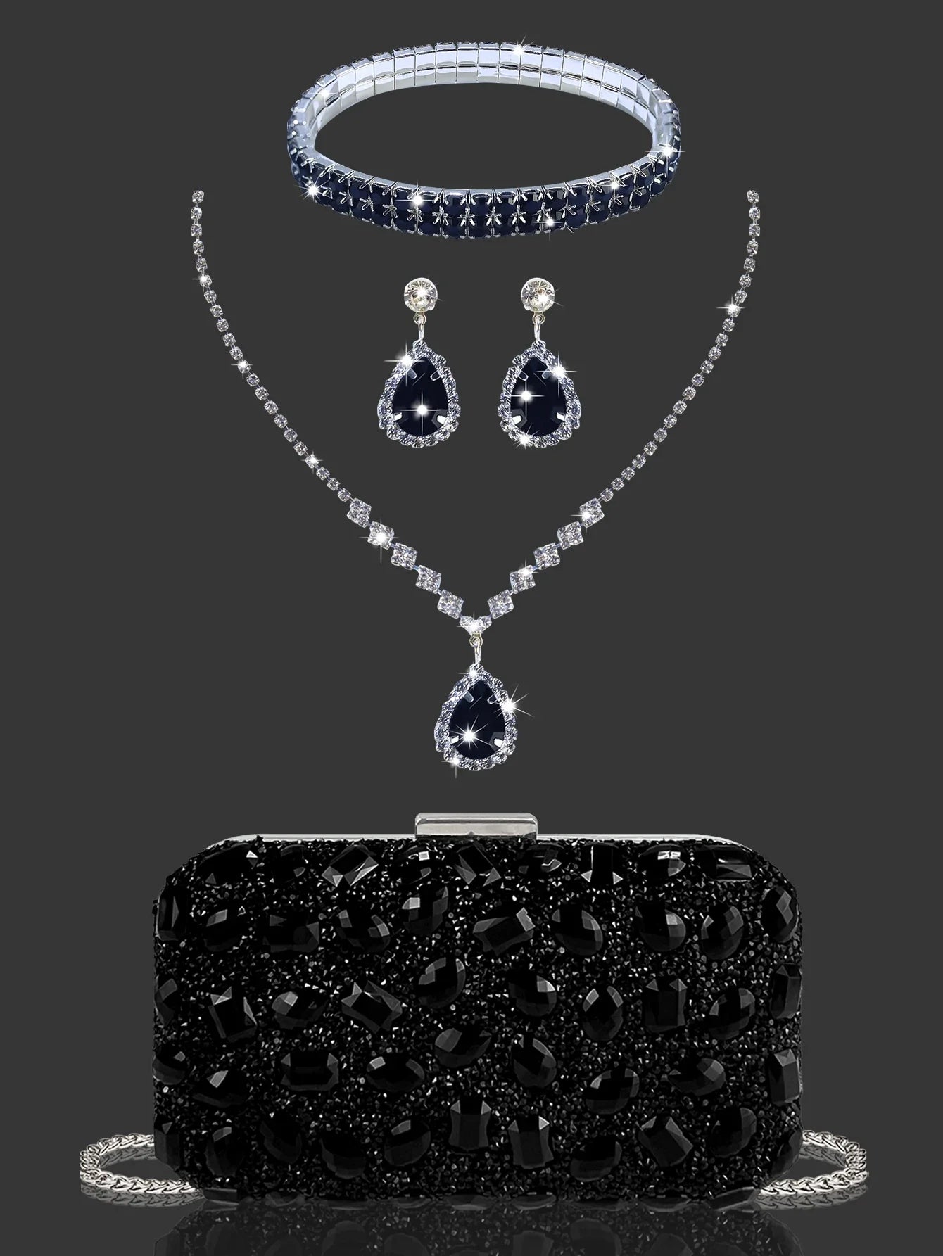 ◾ Zestaw zawiera: Naszyjnik, kolczyki i bransoletkę z kryształkami